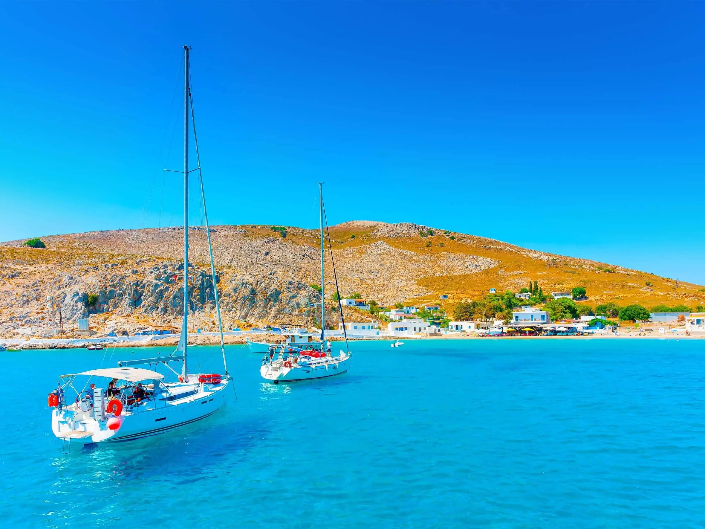 The jewel of the Dodecanese! Pserimos is a small, peaceful island with the charming settlement of Avlakia. Step onto soft golden sand and dive into crystal-clear turquoise waters that look like a postcard. With only a few dozen permanent residents, this island offers authentic Greek island life. Perfect for swimming, snorkeling, and pure relaxation away from the crowds.